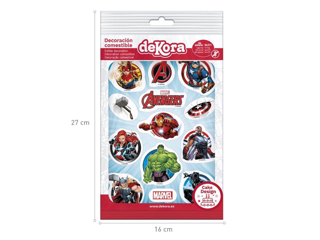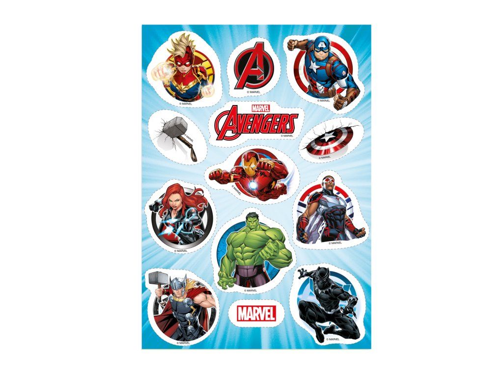 Avengers – vystřižená jedlá dekorace obsahuje několik motivů z oblíbeného světa Avengers, vytištěných na jedlém papíru a připravených k okamžitému použití. Jednotlivé obrázky stačí opatrně oddělit a položit na krém nebo potah, čímž snadno vytvoříš výrazný tematický dort.