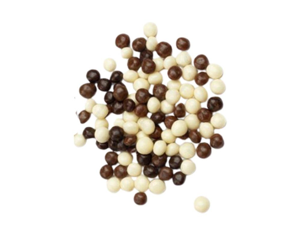 Čokoládové křupky Crunchies mix jsou lahodné cereální kuličky obalené kombinací bílé, mléčné a hořké čokolády. Díky kontrastní barevné kombinaci působí na povrchu dezertů velmi efektně a zároveň přidávají příjemnou křupavou strukturu.