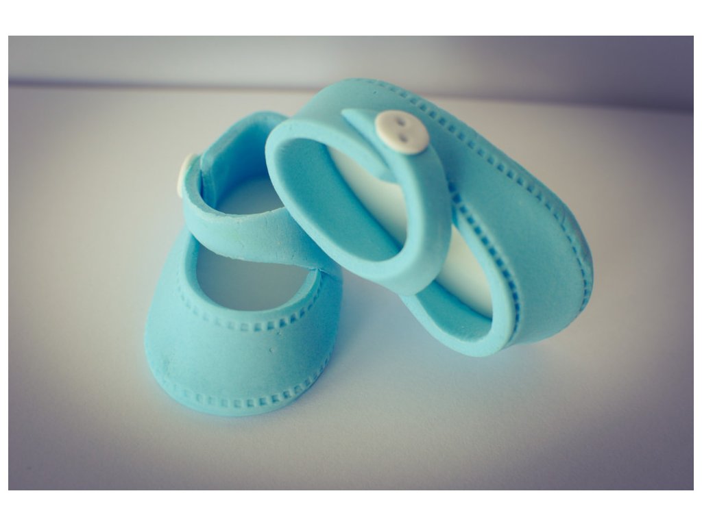 Modré pantofle jsou hotová cukrová dekorace, určená k okamžitému použití na dorty a slavnostní dezerty. Typický baby motiv symbolizuje narození miminka a krásně doplní dorty ke křtinám, vítání miminka nebo baby shower.