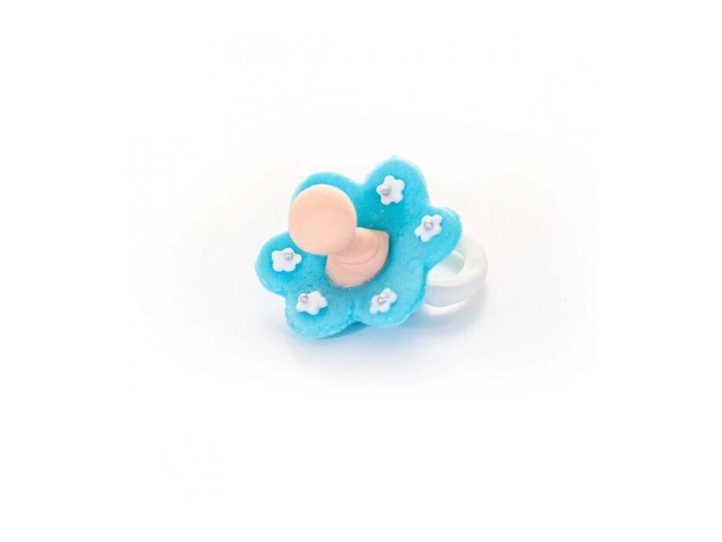 Modrý dudlík je hotová cukrová dekorace, určená k okamžitému použití na dorty a slavnostní dezerty. Jemné pastelové provedení v modré barvě působí něžně a čistě, což z něj činí oblíbený motiv pro baby oslavy, křtiny a vítání miminka.
