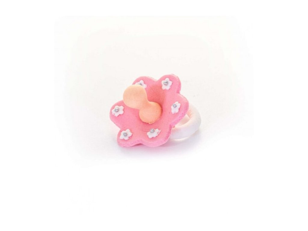 Růžový dudlík je hotová cukrová dekorace, určená k okamžitému použití na dorty a slavnostní dezerty. Jemné pastelové provedení v růžové barvě působí něžně a elegantně, což z něj činí oblíbený motiv pro baby oslavy, křtiny a vítání miminka.