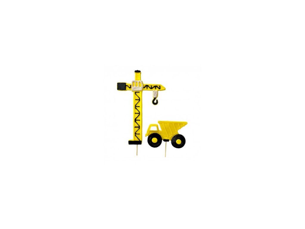 Cukrová dekorace – Stavbařská sada zápichů je tematická dekorace určená ke zdobení dortů, cupcakes a dalších sladkých dezertů. Sada obsahuje motivy ze staveniště, například stavební jeřáb a nákladní auto, které vytvoří originální dort s oblíbenou chlapeckou tématikou.