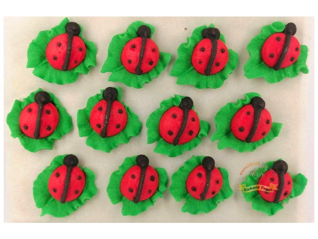 Cukrové dekorace – berušky na lístečku 1 cm (12 ks)