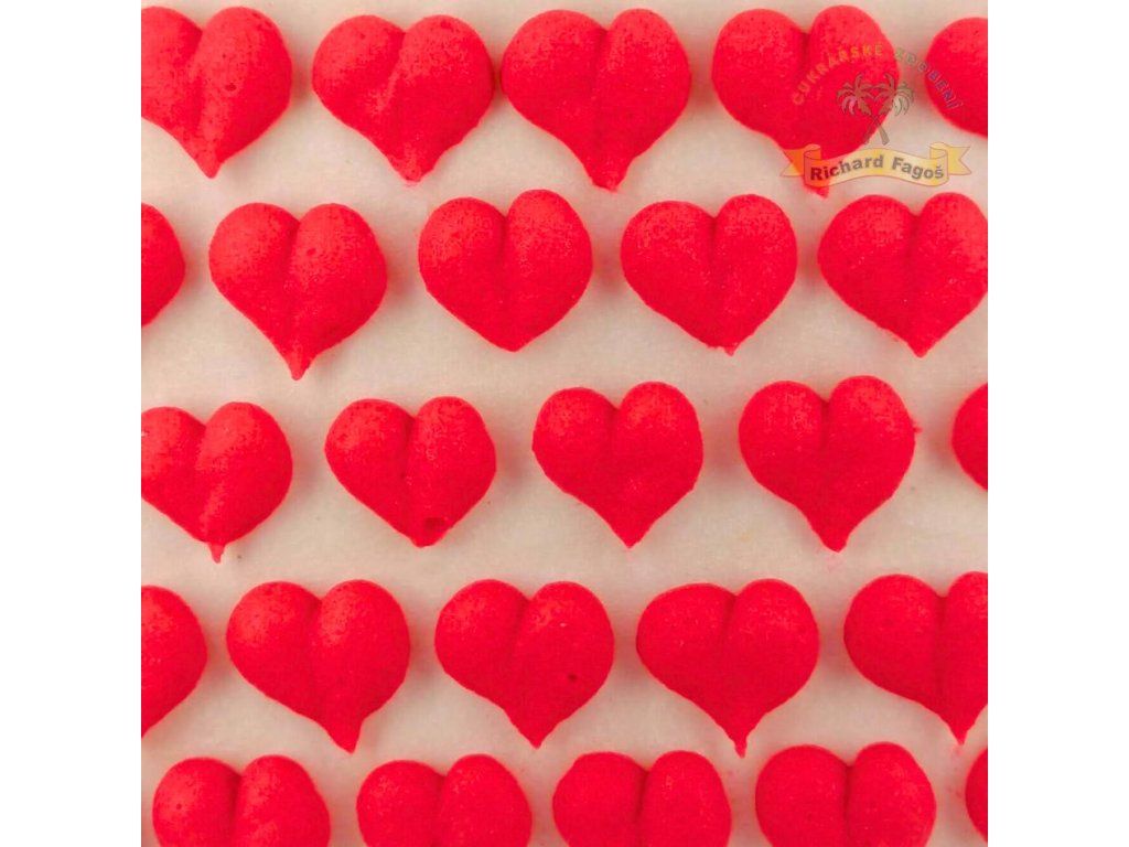 Cukrové dekorace – srdíčka červená jsou určena ke zdobení cukrářských dezertů, dortů a zmrzlin. Srdíčka o velikosti cca 1 cm působí výrazně a díky sytě červené barvě krásně vyniknou na světlých i tmavých krémech.
