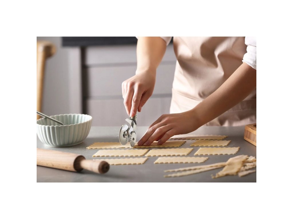 Rádýlko je ideální pro každého, kdo chce dodat svému pečení profesionální vzhled a proměnit každý kousek v malý kulinářský skvost. Ostré provedení umožňuje plynulé krájení bez trhání těsta a zajišťuje přesné výsledky.
