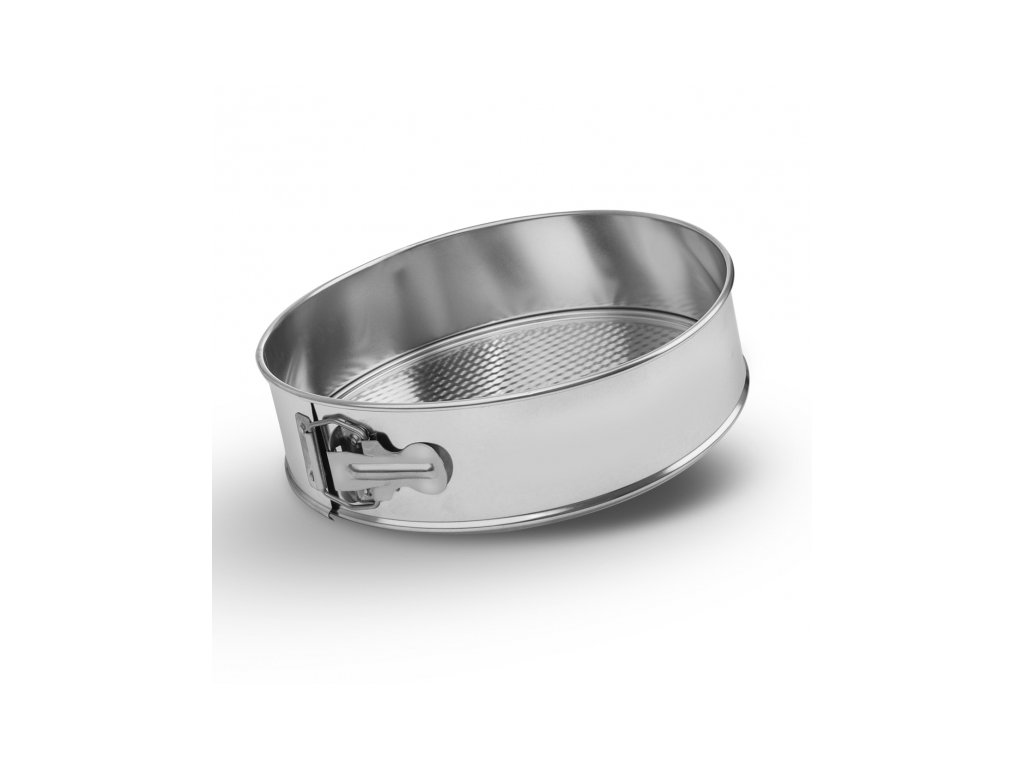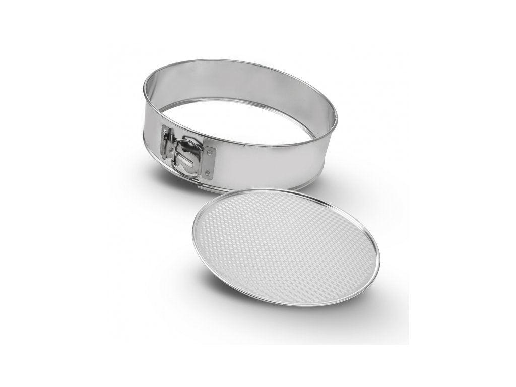 Forma má odnímatelné dno a praktickou přezku, která usnadňuje vyjmutí upečeného korpusu bez poškození.