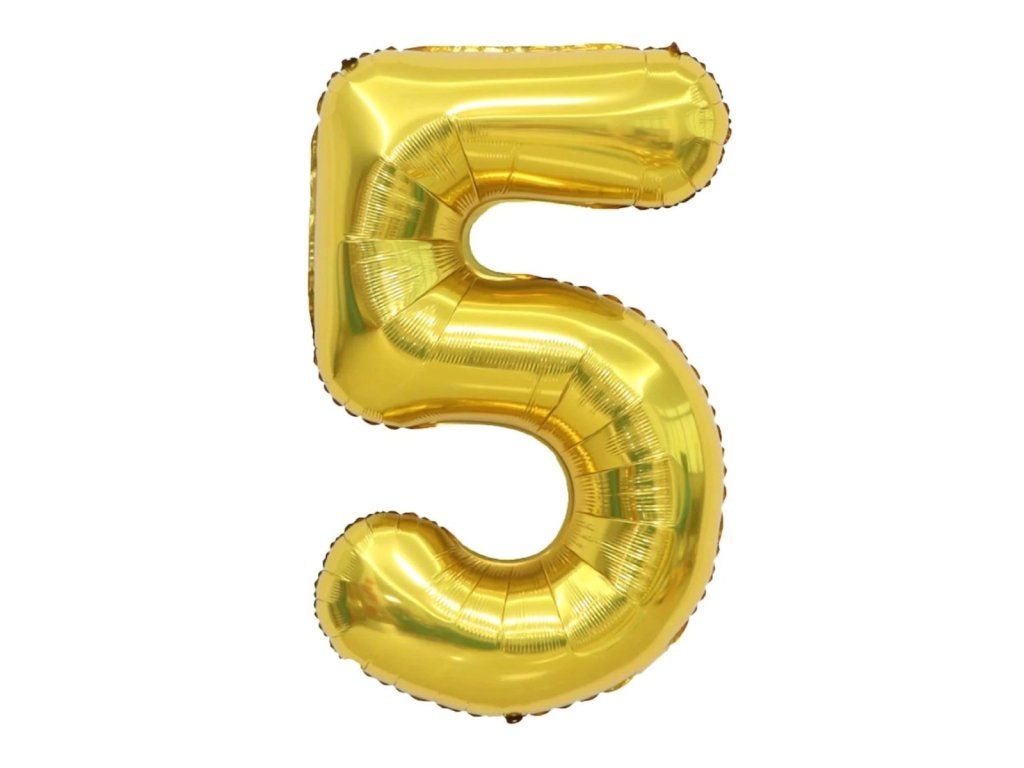 ❤️ Tip Upeč si: Zlatou pětku kombinuj s bílými nebo černými balónky a vytvoř elegantní narozeninovou dekoraci.
