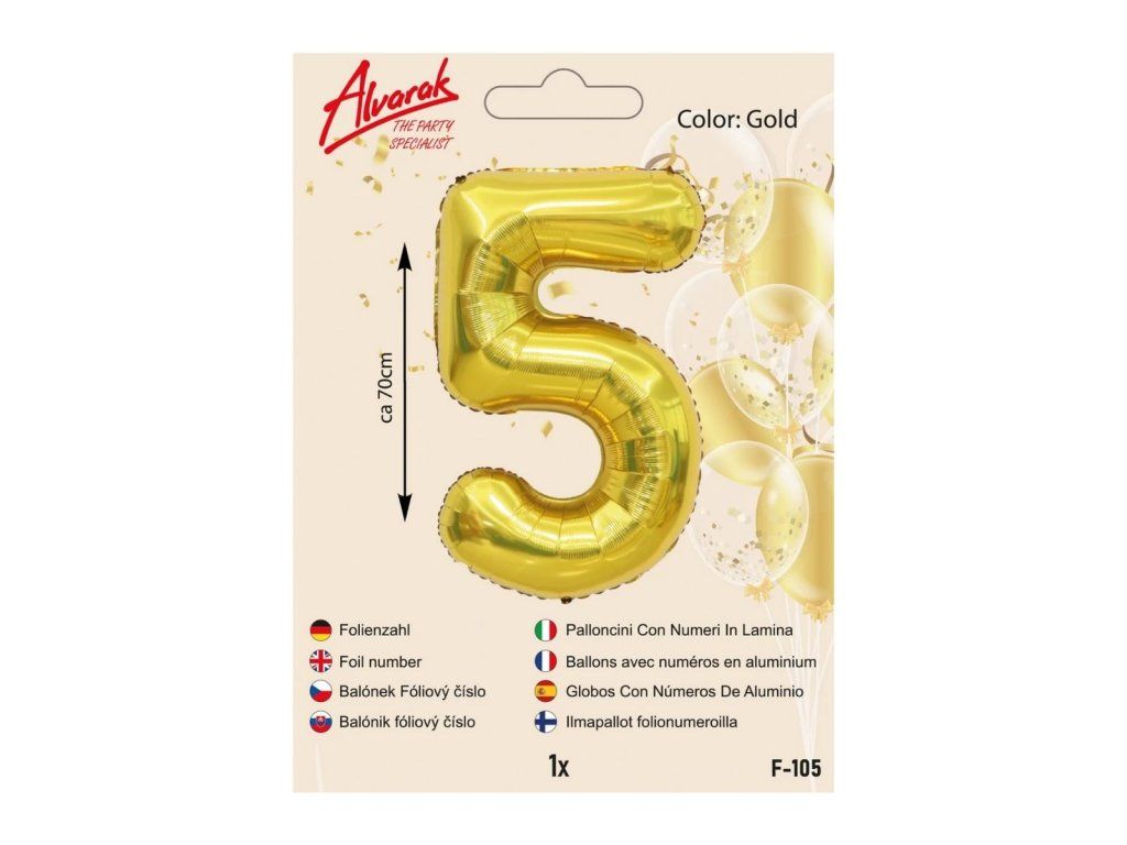 Fóliový balónek číslo 5 zlatý 70 cm – 1 ks je ideální volbou pro narozeninové oslavy, jubilea nebo kombinaci s dalšími čísly. Díky velkému rozměru se stane dominantou výzdoby a okamžitě přitáhne pozornost všech hostů.