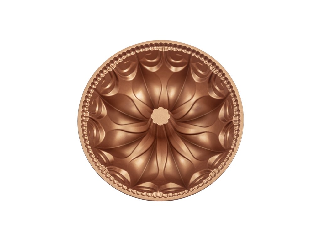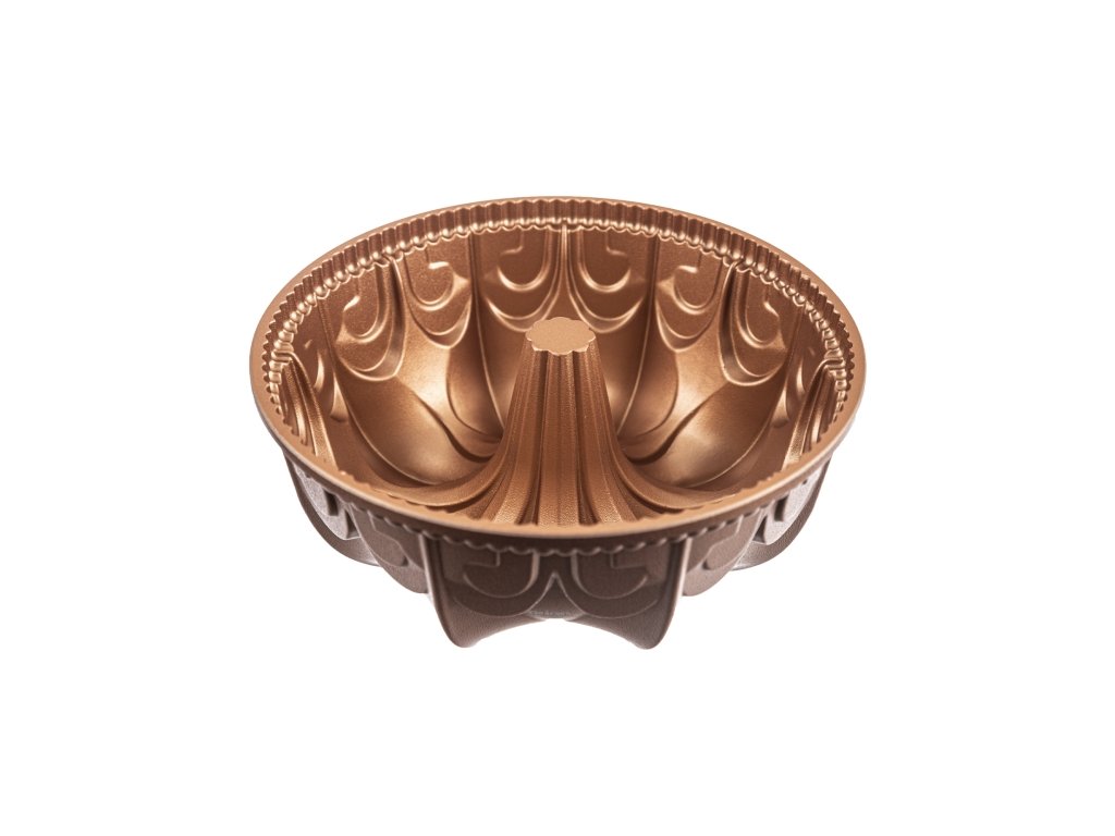Pevný kov zajišťuje rovnoměrné propečení a zlatavý povrch, zatímco měděný odstín formy krásně vynikne i při servírování.