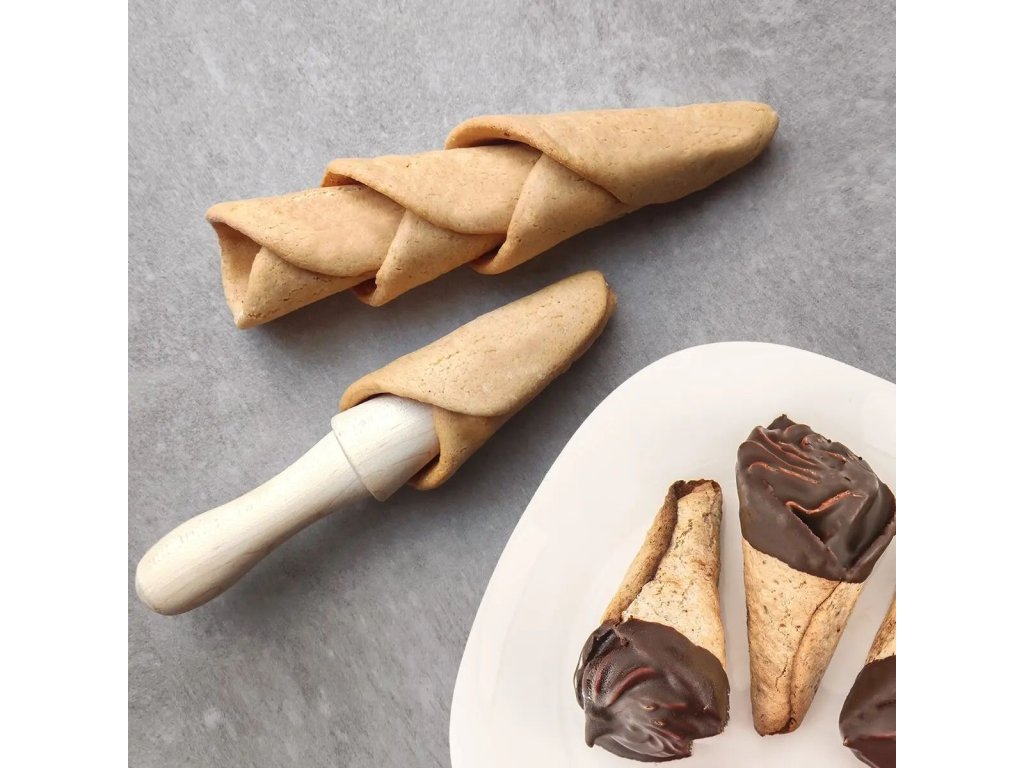 Tento bukový tvarovač kornoutků je praktickou pomůckou pro snadnou výrobu domácích kornoutků z vaflí. Z ještě teplé vafle kornoutek rychle stočíš, po vychladnutí jej jednoduše stáhneš z kužele a kornoutek si zachová svůj tvar.