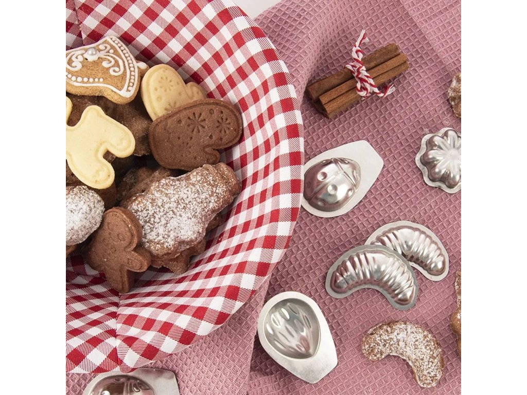 Tyto malé formičky na pečení rohlíčků využiješ při přípravě tradičního vánočního cukroví i drobných dezertů. Hodí se na oříškové a čokoládové pracny, jemné madlenky, vanilkové rohlíčky nebo polomáčené rohlíčky slepované krémem. Stejně dobře poslouží i k odlévání čokolády na domácí pralinky.