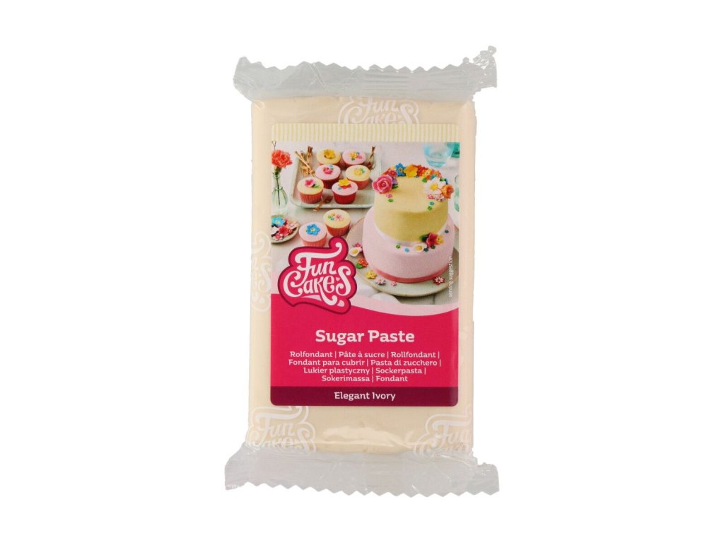 Cukrová pasta FunCakes Elegant Ivory vyniká svou jemnou slonovinovou barvou a lahodnou vanilkovou chutí. Díky své jemné struktuře je velmi pružná, hladká a snadno použitelná, takže je perfektní pro potahování dortů, vyřezávání tvarů i tvorbu různých motivů.