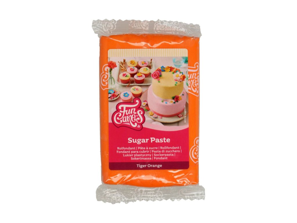 Cukrová pasta FunCakes Tiger Orange vyniká sytou jasně oranžovou barvou a lahodnou vanilkovou chutí. Díky své jemné struktuře je velmi pružná, hladká a snadno zpracovatelná, což z ní dělá ideální volbu pro potahování dortů i tvorbu dekorací.