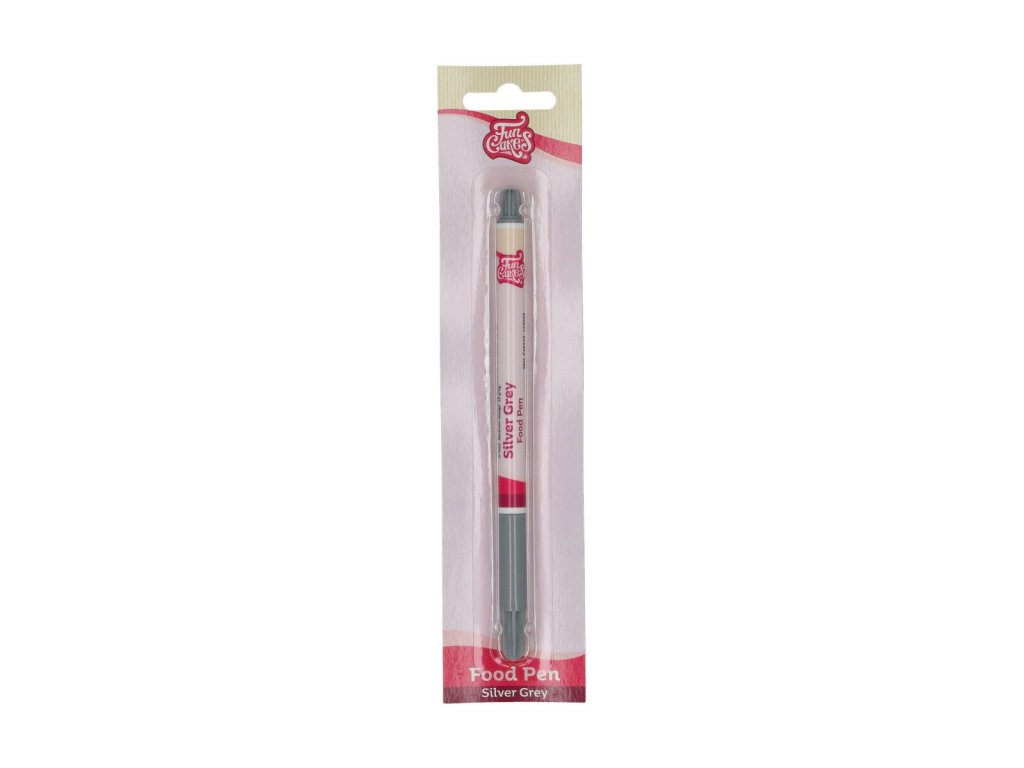 FunCakes Food Pen Silver Grey je praktické pero naplněné jedlým inkoustem, určené pro tvorbu drobných detailů, textů, řádků a dekorací na dortech, cupcakes a sušenkách. Díky flexibilnímu hrotu snadno vytvoříš jemné linie i silnější tahy podle tlaku.