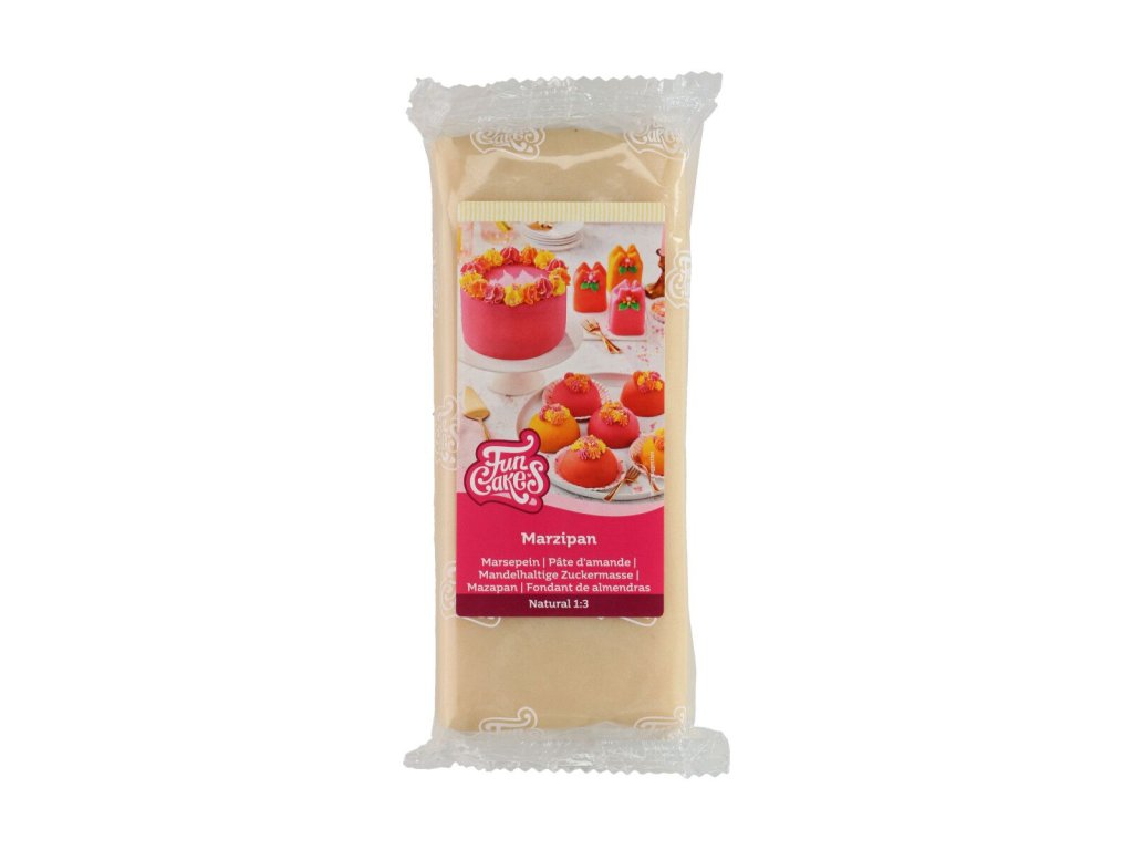 Marcipán FunCakes Natural 1:3 je lahodný marcipán, který se velmi snadno zpracovává, je pružný a hladký a výborně se rozvaluje. Po rozválení má jemnou, ale pevnou strukturu, díky čemuž je skvělou volbou pro potahování dortů i profesionální cukrářskou práci.