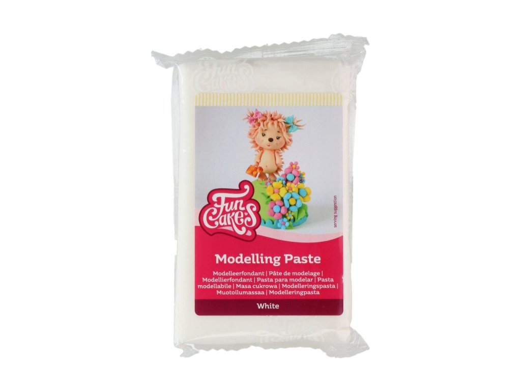 Modelovací pasta FunCakes White je speciálně vyvinutá pro modelování figurek, květin a dalších ozdob na dorty. Má hladkou, poddajnou strukturu, která se snadno zpracovává a umožňuje vytvářet jemné detaily bez prasklin.