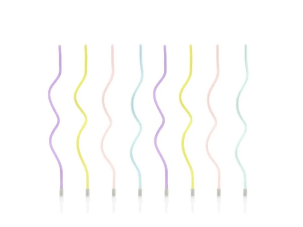 Kroucené narozeninové svíčky, mix barev – 14 cm jsou stylovou a zároveň jemnou dekorací pro dětské oslavy i moderní narozeniny. Kombinace barev (žlutá, růžová, modrá, fialová, zelená) krásně vynikne na světlých dortech a ladí s pastelovou výzdobou.