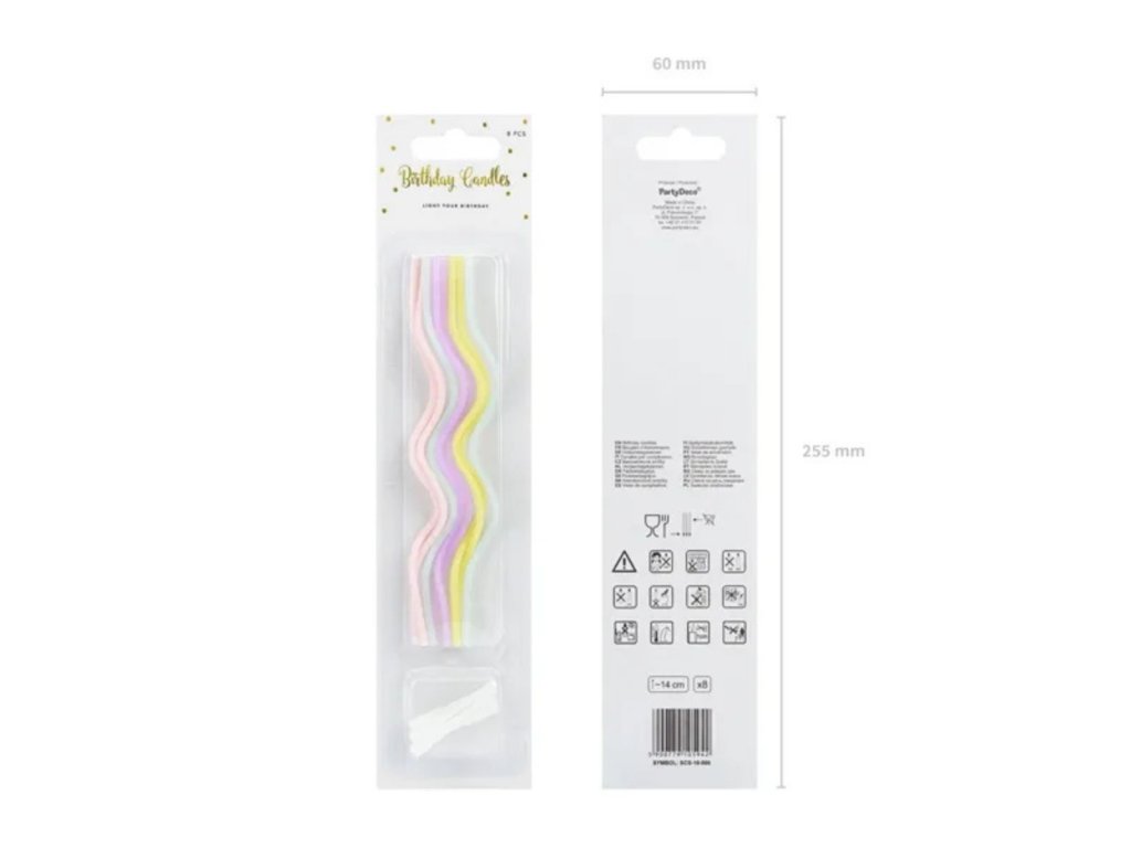 Svíčky mají elegantní kroucený tvar a díky výšce cca 14 cm se stanou výrazným, ale nepřehlušujícím prvkem dortu. Součástí balení jsou praktické stojánky pro snadné a stabilní zapíchnutí.