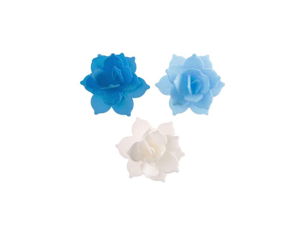 Mini lekníny - modré jsou lehká jedlá dekorace ideální pro rychlé a efektní dozdobení dortů, zákusků nebo tematických dezertů. Kombinace světle i tmavě modrých odstínů spolu s neutrální bílou vytváří elegantní 3D efekt, který krásně vynikne na krémech i fondánu.
