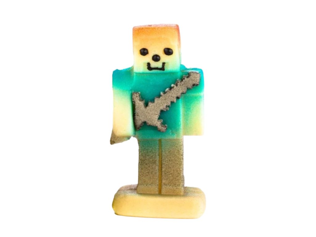 Modrý stavitel z marcipánu je jedlá dekorace určená k ozdobení dortů a dalších cukrářských výrobků. Díky výrazné modré barvě a jasně rozpoznatelnému stavebnímu motivu je perfektní volbou pro dětské dorty s minecraft a stavební tématikou.
