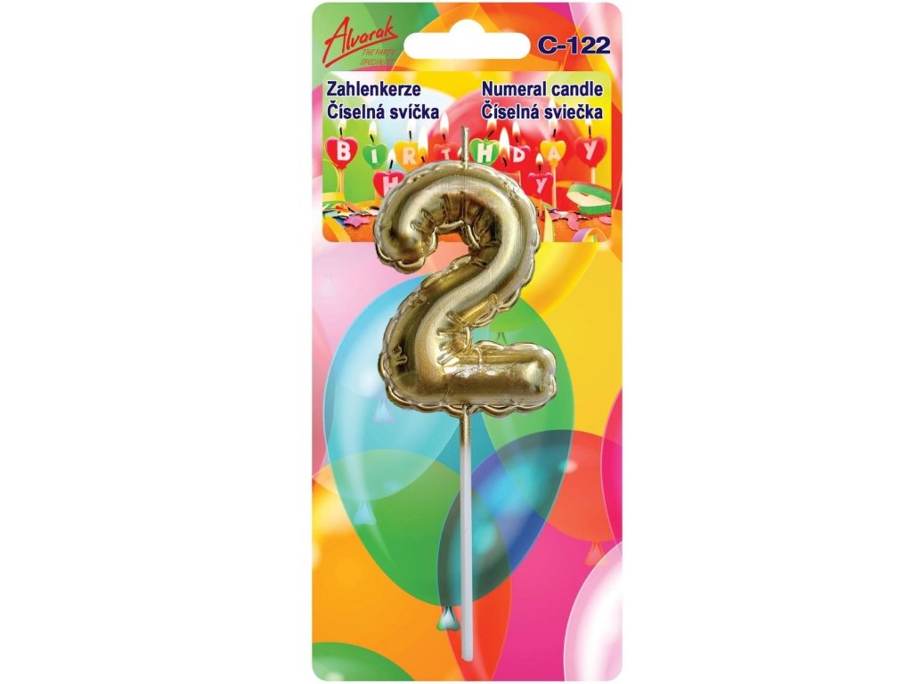 Narozeninová dortová svíčka zlatý balónek – číslo 2