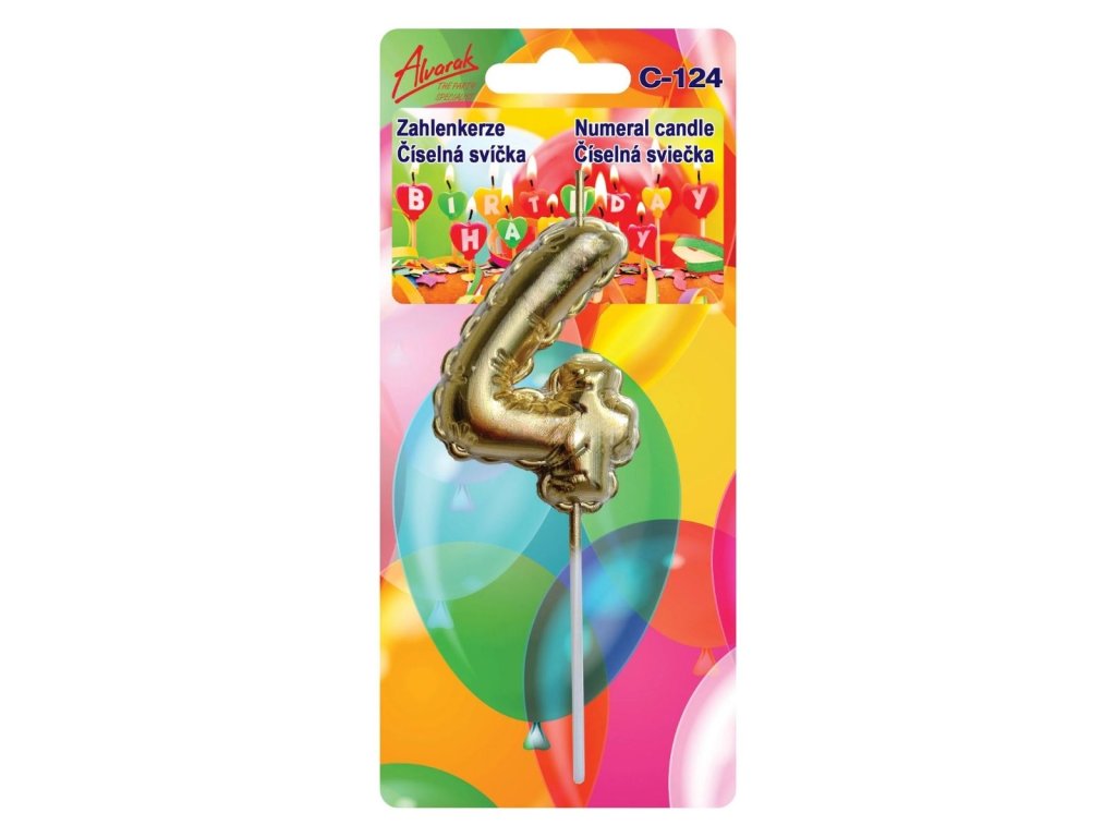 Narozeninová dortová svíčka zlatý balónek – číslo 4
