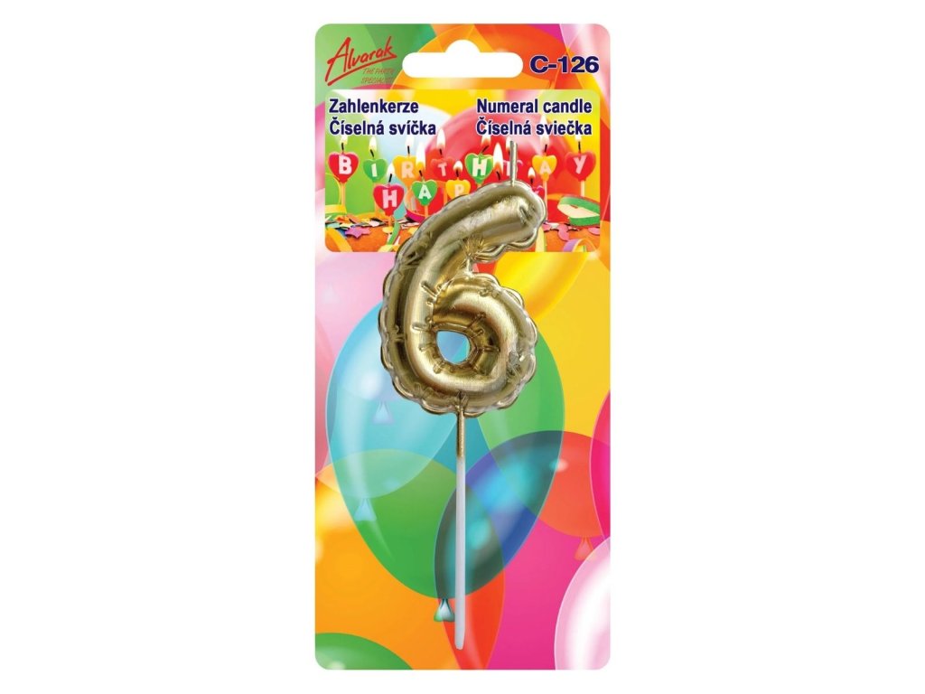 Narozeninová dortová svíčka zlatý balónek – číslo 6