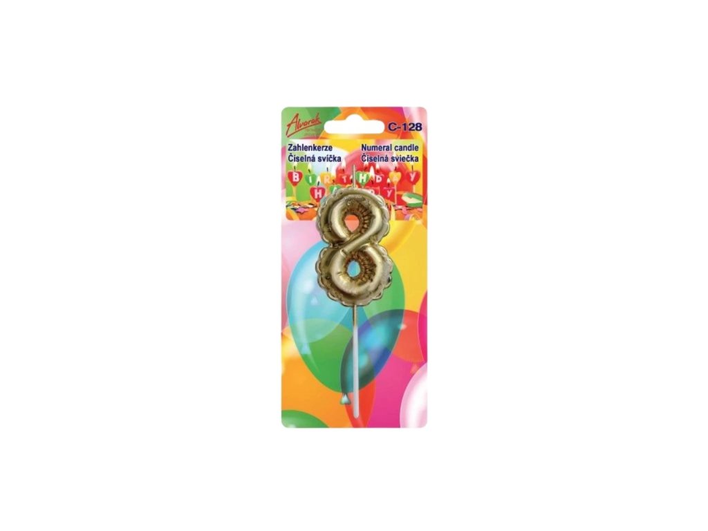 Narozeninová dortová svíčka zlatý balónek – číslo 8