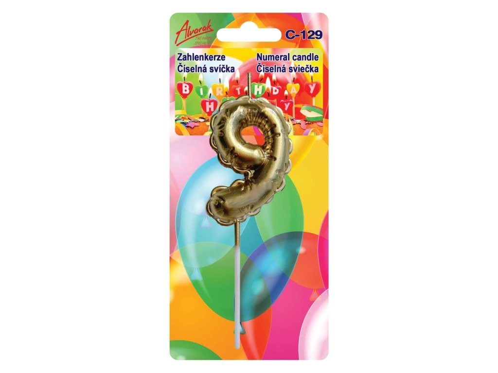 Narozeninová dortová svíčka zlatý balónek – číslo 9