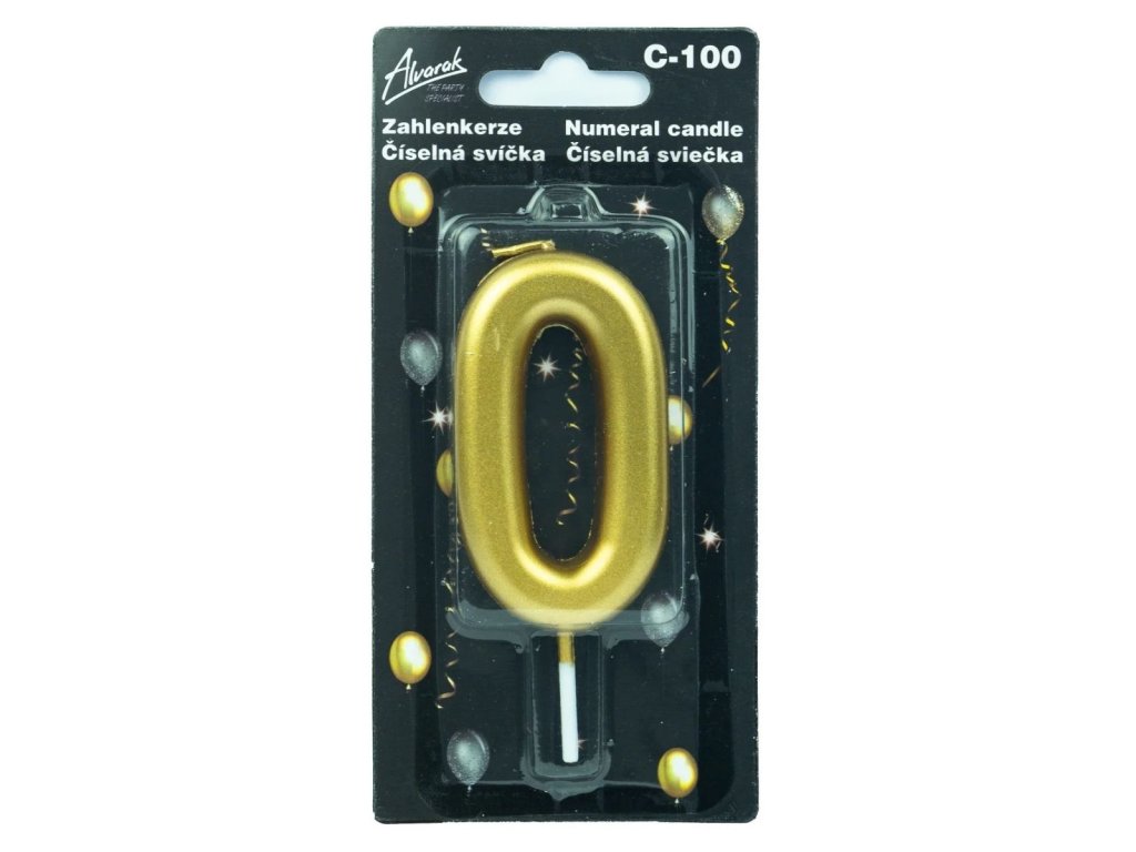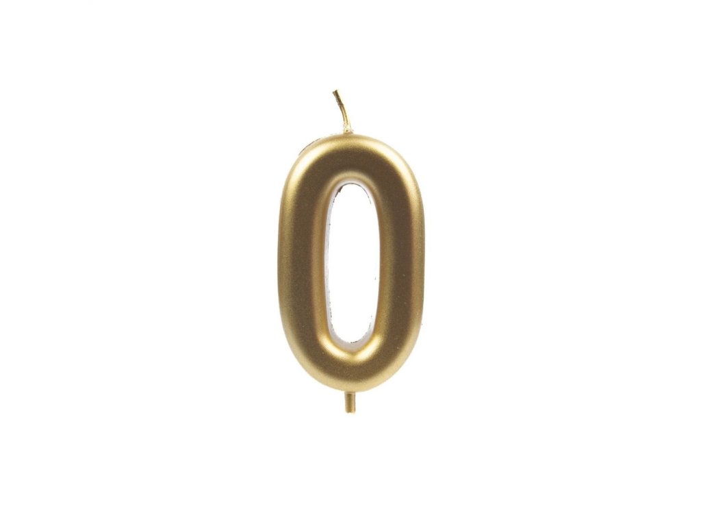 Narozeninová metalická zlatá dortová svíčka – číslo 0