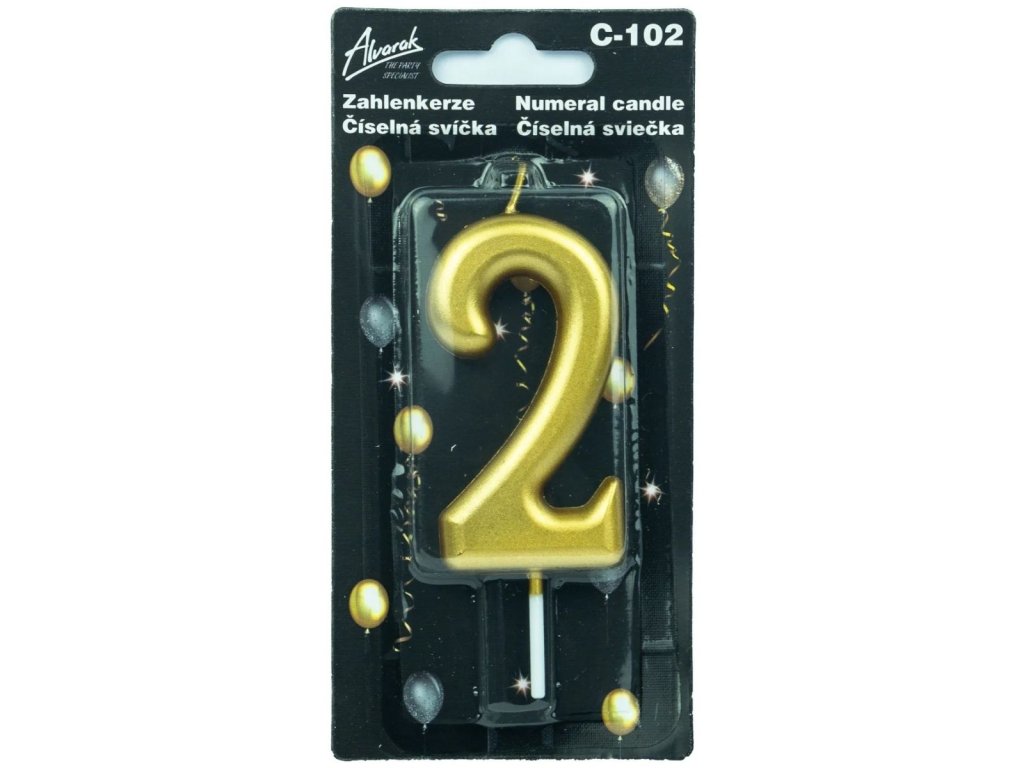 Narozeninová metalická zlatá dortová svíčka – číslo 2