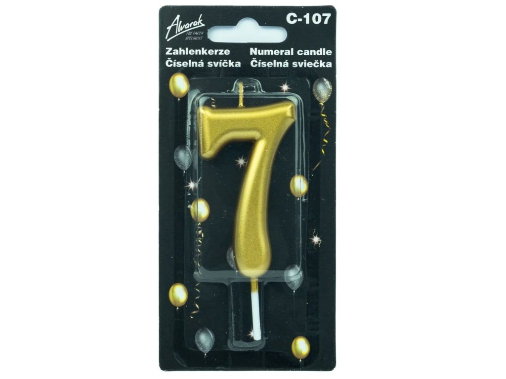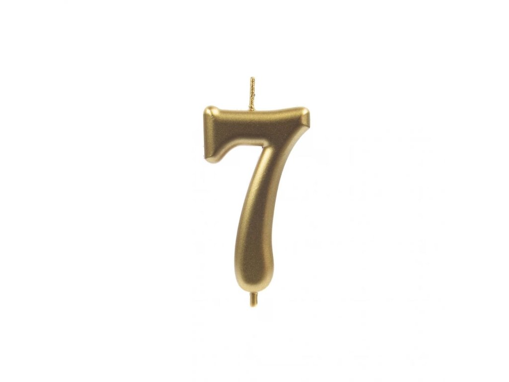Narozeninová metalická zlatá dortová svíčka – číslo 7