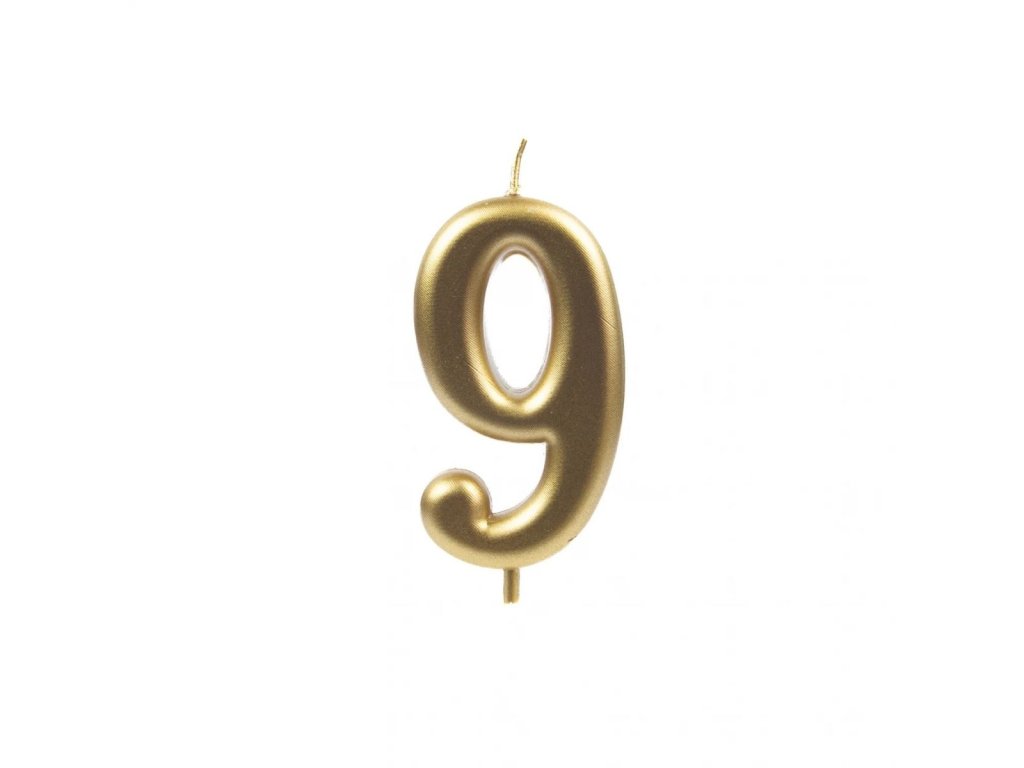 Narozeninová metalická zlatá dortová svíčka – číslo 9