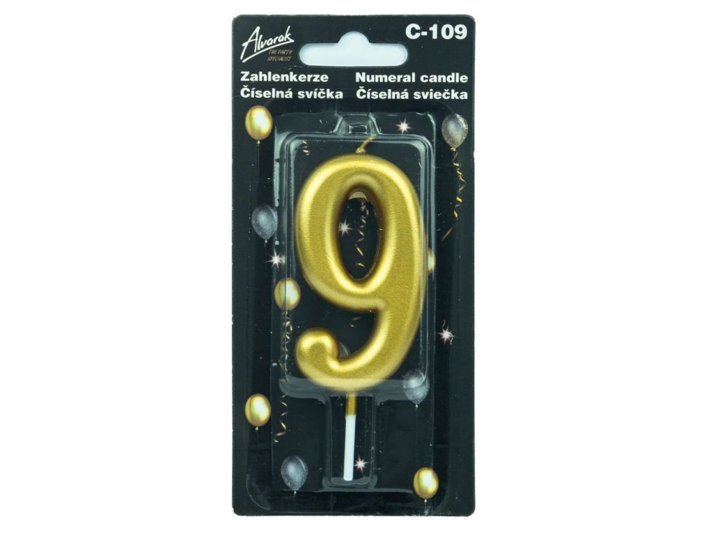 Narozeninová metalická zlatá dortová svíčka – číslo 9 je výrazným detailem, který okamžitě upoutá pozornost na každém dortu. Metalické zlaté provedení působí elegantně a podtrhne význam každého narozeninového či výročního okamžiku.