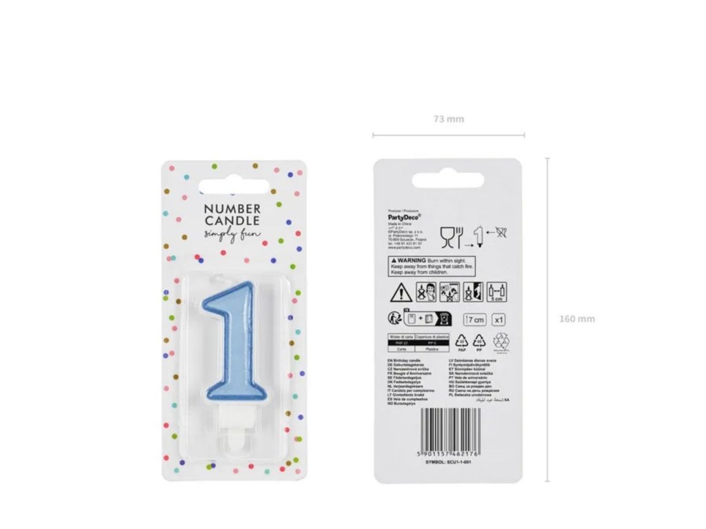 Narozeninová svíčka číslo 1, modrá – 7 cm je univerzálním doplňkem pro dětské i dospělé oslavy. Modrá barva působí svěže a hravě, proto se skvěle hodí zejména na dětské narozeniny, ale i na tematické oslavy v modrých tónech.