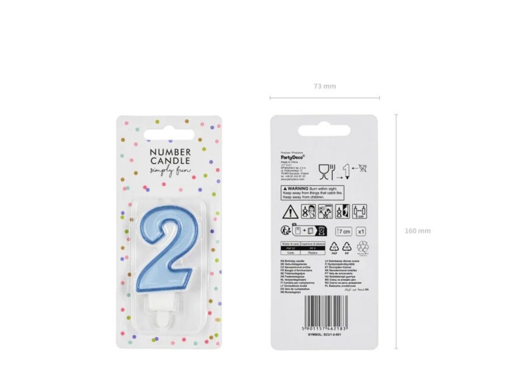 Narozeninová svíčka číslo 2, modrá – 7 cm je univerzálním doplňkem pro dětské i dospělé oslavy. Modrá barva působí svěže a hravě, proto se skvěle hodí zejména na dětské narozeniny, ale i na tematické oslavy v modrých tónech.