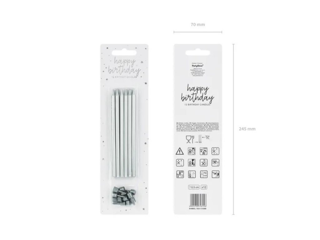Narozeninové svíčky jednobarevné, stříbrné – 12,5 cm (12 ks)