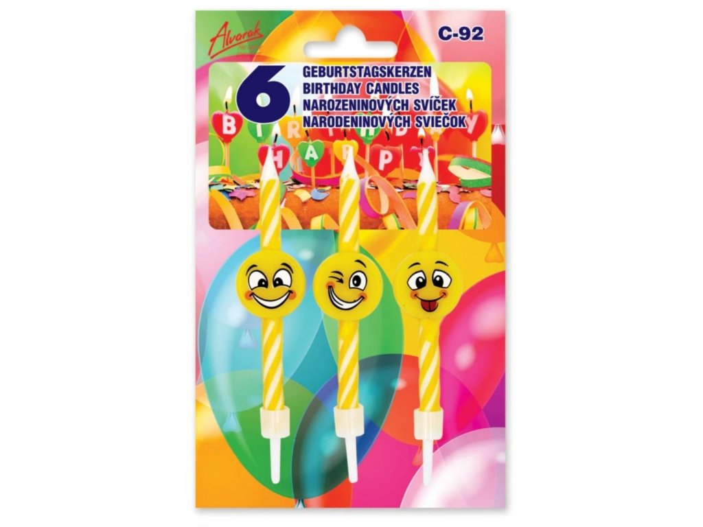 Narozeninové svíčky s motivem emotikonů – 14 cm (6 ks)