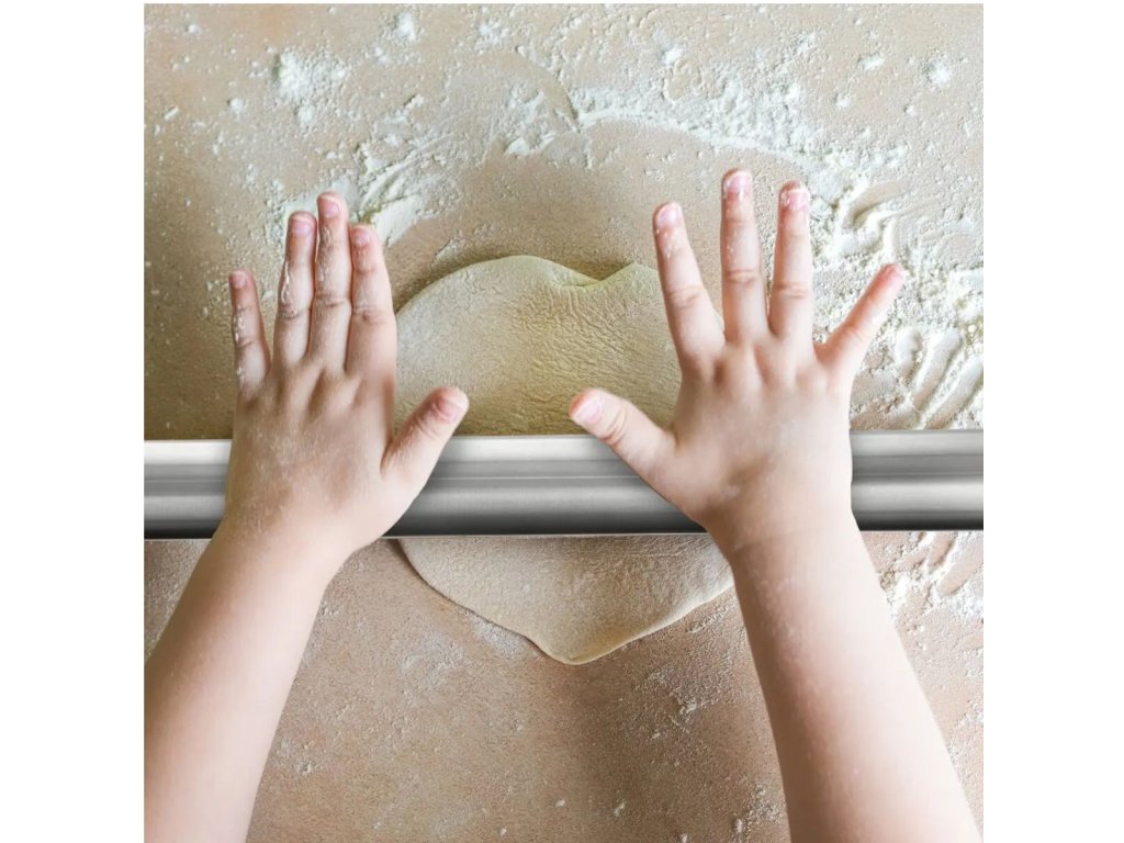 Vyválené, hladké těsto lze pomocí válečku snadno přenést na pečicí plech, kámen nebo přímo do formy. Váleček lze využít i k drcení ořechů nebo karamelu přes pečicí papír, což z něj dělá velmi univerzální kuchyňský nástroj.