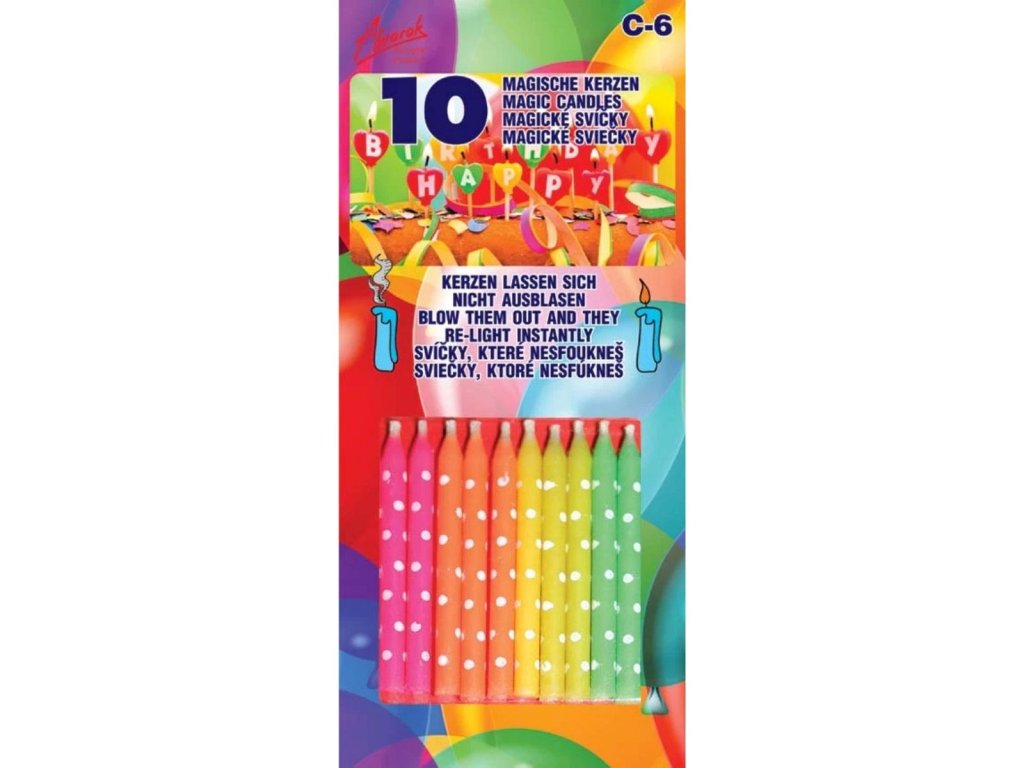 Balení obsahuje 10 svíček s praktickými stojánky, díky nimž se snadno a stabilně zapichují do dortu. Jsou skvělou volbou pro dětské oslavy, party s přáteli i jako vtipné překvapení pro oslavence, který má rád legraci.