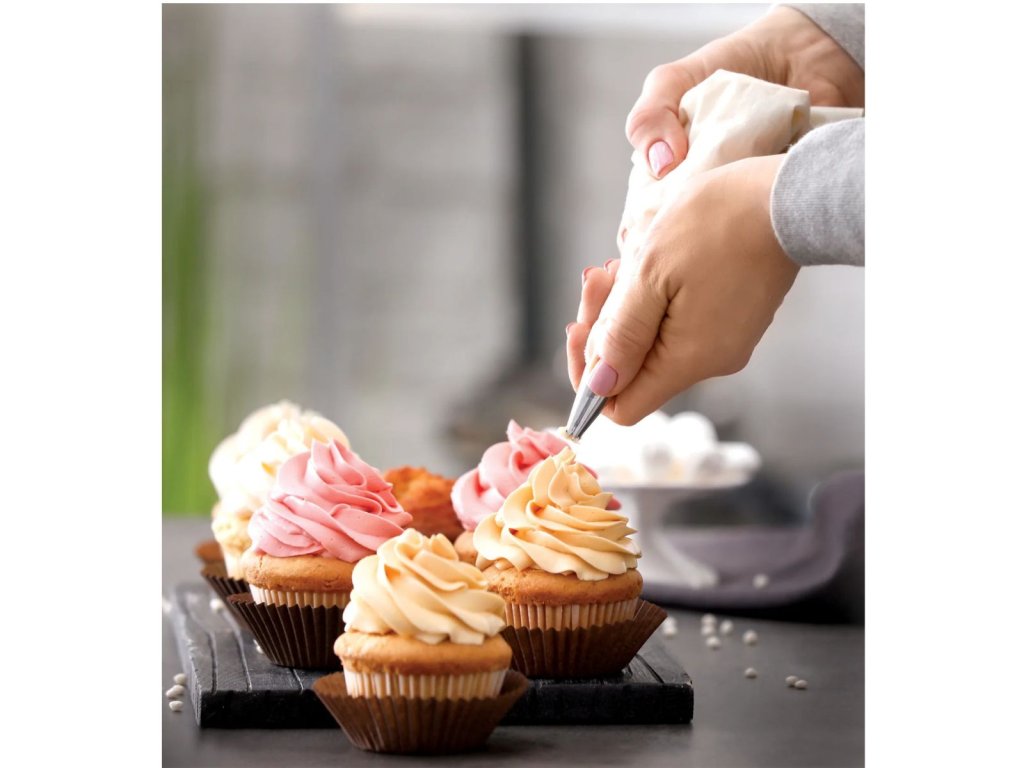Objev radost z pečení s těmito jednorázovými cukrářskými sáčky, které ti usnadní zdobení dortů, cupcakes i zákusků. Stačí vložit oblíbenou zdobicí špičku, naplnit krémem či šlehačkou a během chvilky získají tvoje cukrovinky profesionální vzhled.