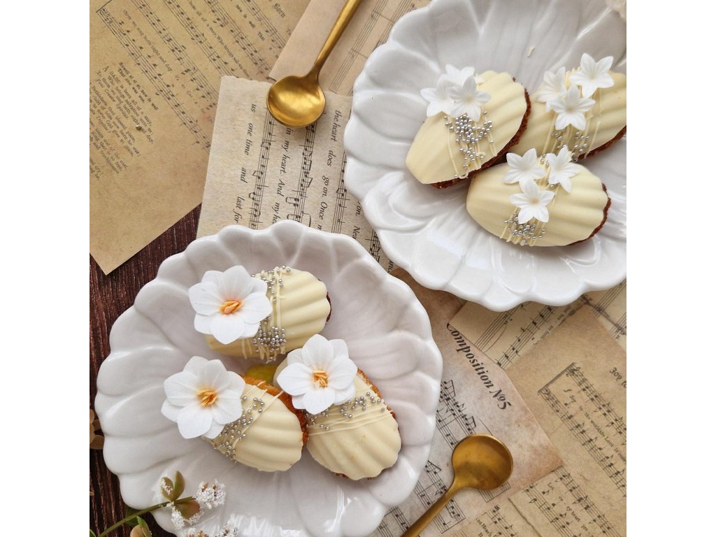 Perleťové oplatkové květy šeřík jsou lehká oplatková dekorace vhodná pro detailní zdobení dortů, zákusků nebo svatebních dezertů. Díky malému průměru cca 2 cm umožňují vytvářet jemné květinové kompozice a profesionální cukrářský vzhled.