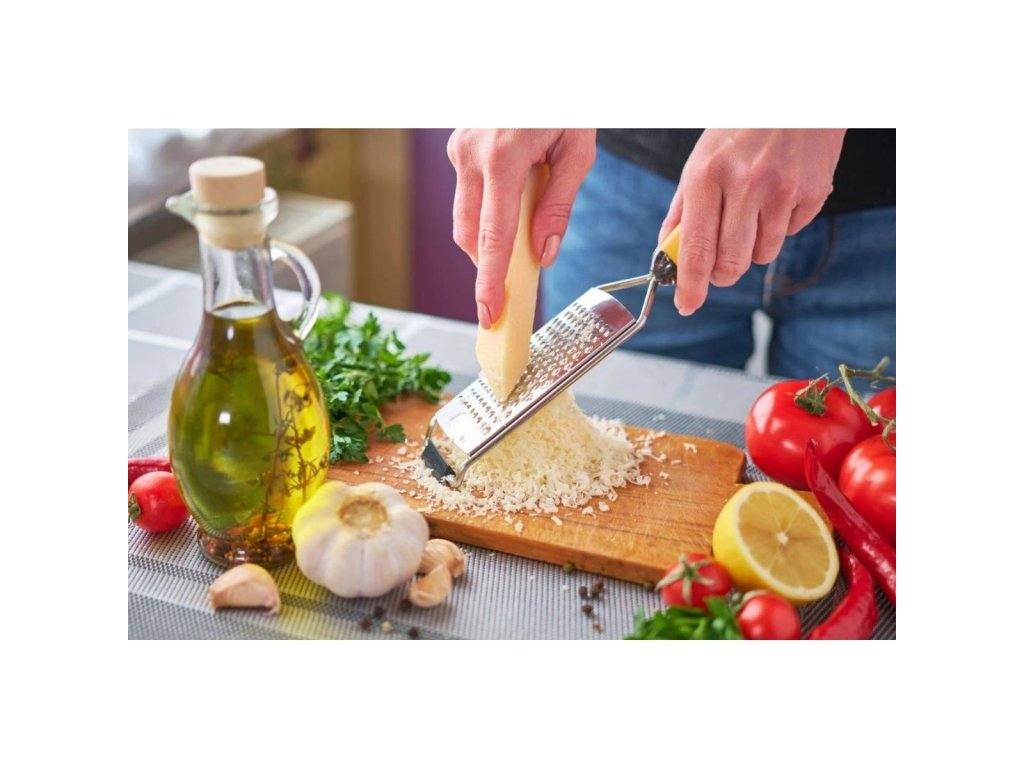 Struhadlo je vyrobeno z odolné nerezové oceli, která si zachovává kvalitu i při dlouhodobém používání. Ergonomická rukojeť pohodlně padne do ruky, neklouže a zajišťuje bezpečný úchop při práci v kuchyni.