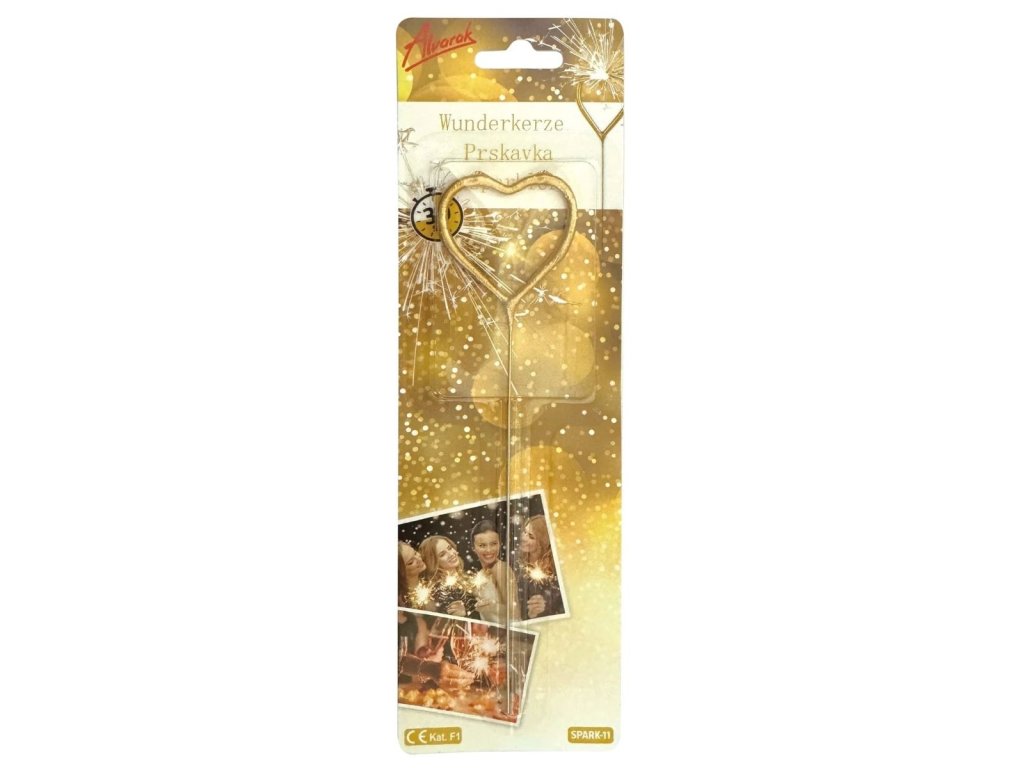 Prskavka srdce – 17 cm je efektní doplněk pro slavnostní chvíle plné radosti a emocí. Tvar srdce dodá oslavě romantický nádech a po zapálení vykouzlí jasné, třpytivé jiskry, které zaujmou na první pohled.
