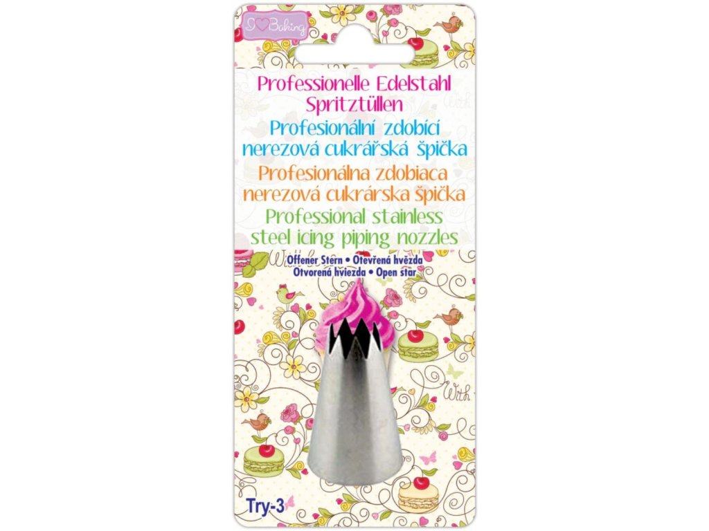 Vytvoř si doma i v cukrárně nádherné dezerty s touto nerezovou zdobicí špičkou TRY‑3 – otevřená hvězda. Díky pevnému a odolnému provedení z kvalitní nerezové oceli se špička snadno čistí a zaručuje dlouhou životnost i přesné výsledky při každém zdobení.